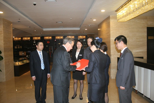 ?耶魯大學(xué)校長(zhǎng)理查德·萊文教授在皓月軒用完晚餐后與啟真酒店管理層合影留念。他對(duì)酒店所提供的良好服務(wù)及會(huì)議、用餐環(huán)境表示感謝,并對(duì)美味菜肴贊不絕口。