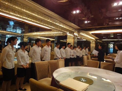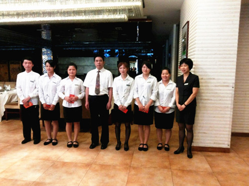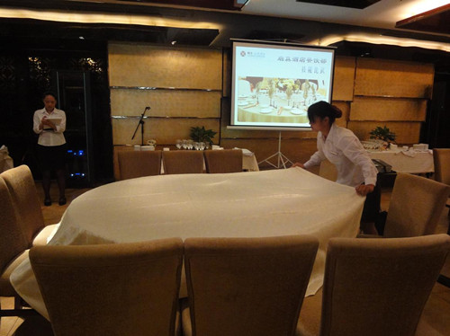 為了強(qiáng)化員工的服務(wù)意識(shí)、質(zhì)量意識(shí)及標(biāo)準(zhǔn)化意識(shí),2013年9月3日下午,浙大圓正旅業(yè)集團(tuán)下屬的啟真酒店餐廳全體服務(wù)員及其領(lǐng)班在酒店二樓藕舫廳展開(kāi)了一場(chǎng)餐飲技能操作比武。